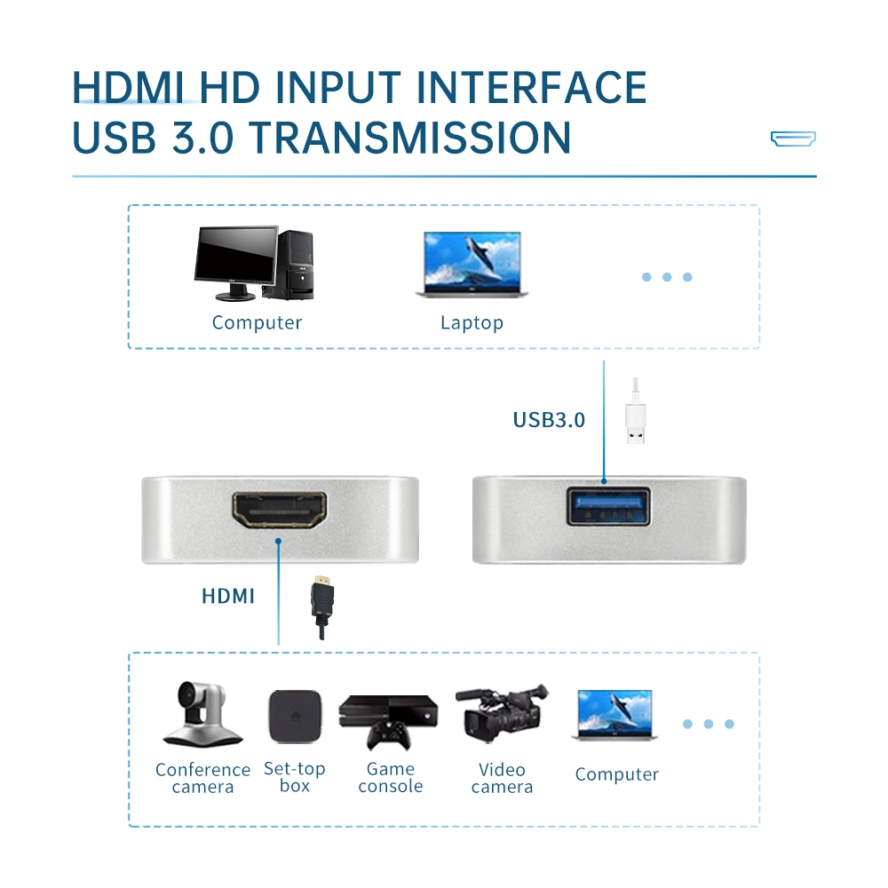 HDMI USB Video Capture Device, is easy to carry, has superior performance, superior compatibility, simple installation and many other features. It can capture one HDMI 1080p60 input and output signal;